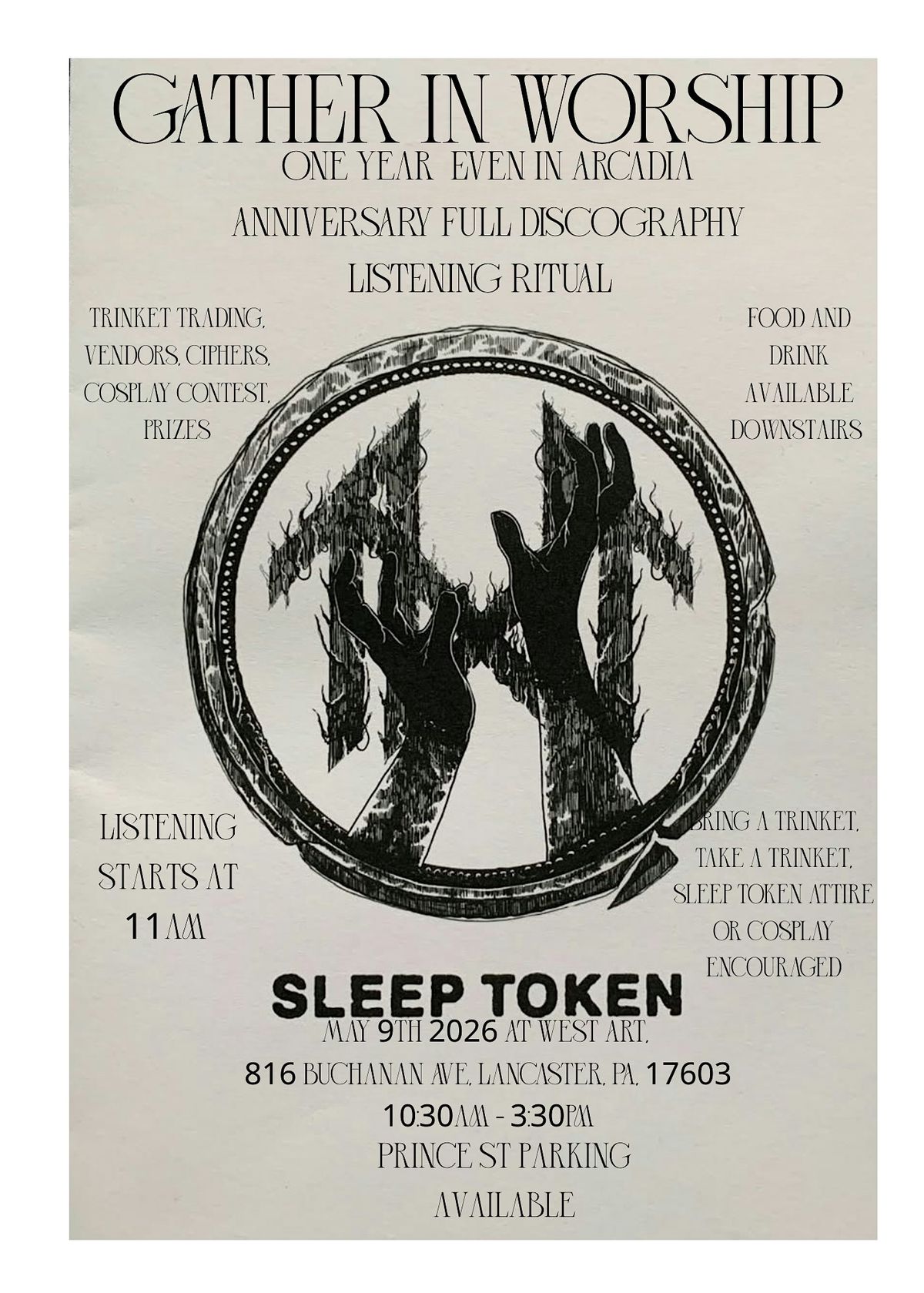 Perhaps you did not get the chance to attend a ritual in Arcadia. We gather in Worship as we listen to every era of Sleep Token.