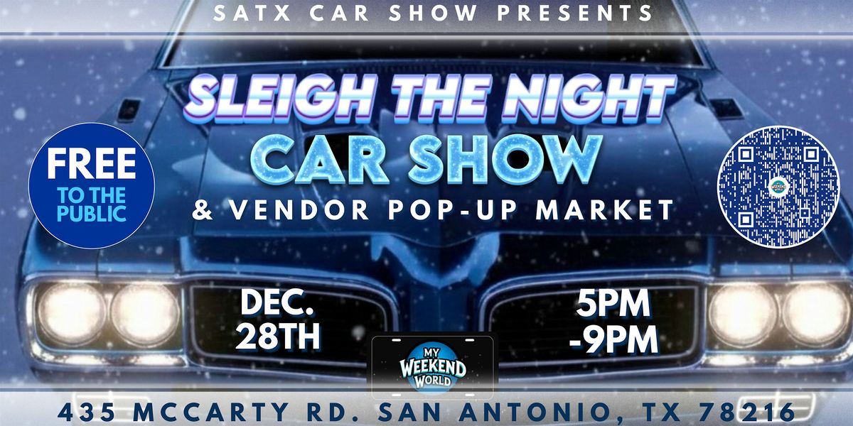 Sleigh the Night! Holiday car show + vendor pop-up, eats & more. FREE! Dec 28, 5–9PM at My Weekend World, San Antonio.About this Event