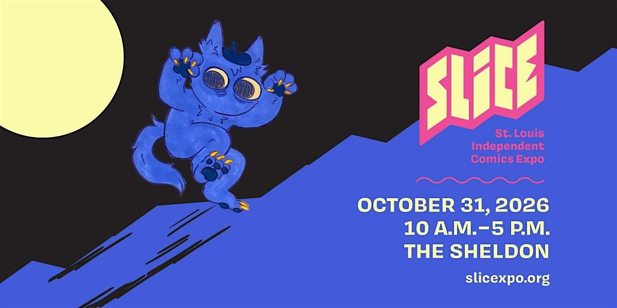 The St. Louis Independent Comics Expo (SLICE) is St. Louis’s premier annual indie-print showcase, bringing together over 100 writers and artists from St. Louis and beyond to showcase their self-published books, comics, zines, prints, magazines, poetry, and more. SLICE 2026 takes place on October 31, 10 a.m.–5 p.m., at The Sheldon Concert Hall and Art Galleries. The expo is free to attend and open to the public.