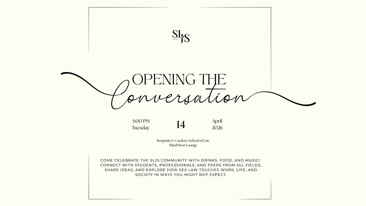 Join the Sex Law and Justice Society for SLJS: Opening the Conversation, a reception celebrating our community and the work happening in sex law and justice. This event is designed for students, professionals, and peers from all fields to come together, share ideas, and explore how sex law intersects with work, life, and society in ways you might not expect.