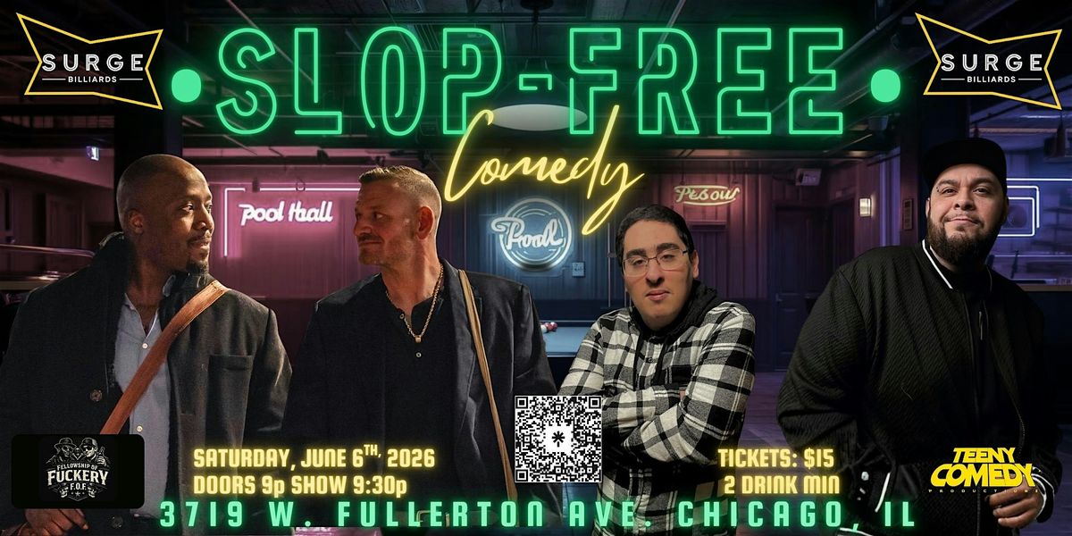 Get ready for a night full of laughs at The Pocket at Surge Billiards! Join us on June 6, 2026 at 9:00 PM (Central Time) for comedy that’s worthy of a late slot on Chicago summer night . Bring your friends, grab a drink (two!), and enjoy an evening of cool vibes and hot jokes with the Midwest's most provocative comedians working today. Don’t miss out on this awesome in-person event. Remember to call your shots, no-slop!