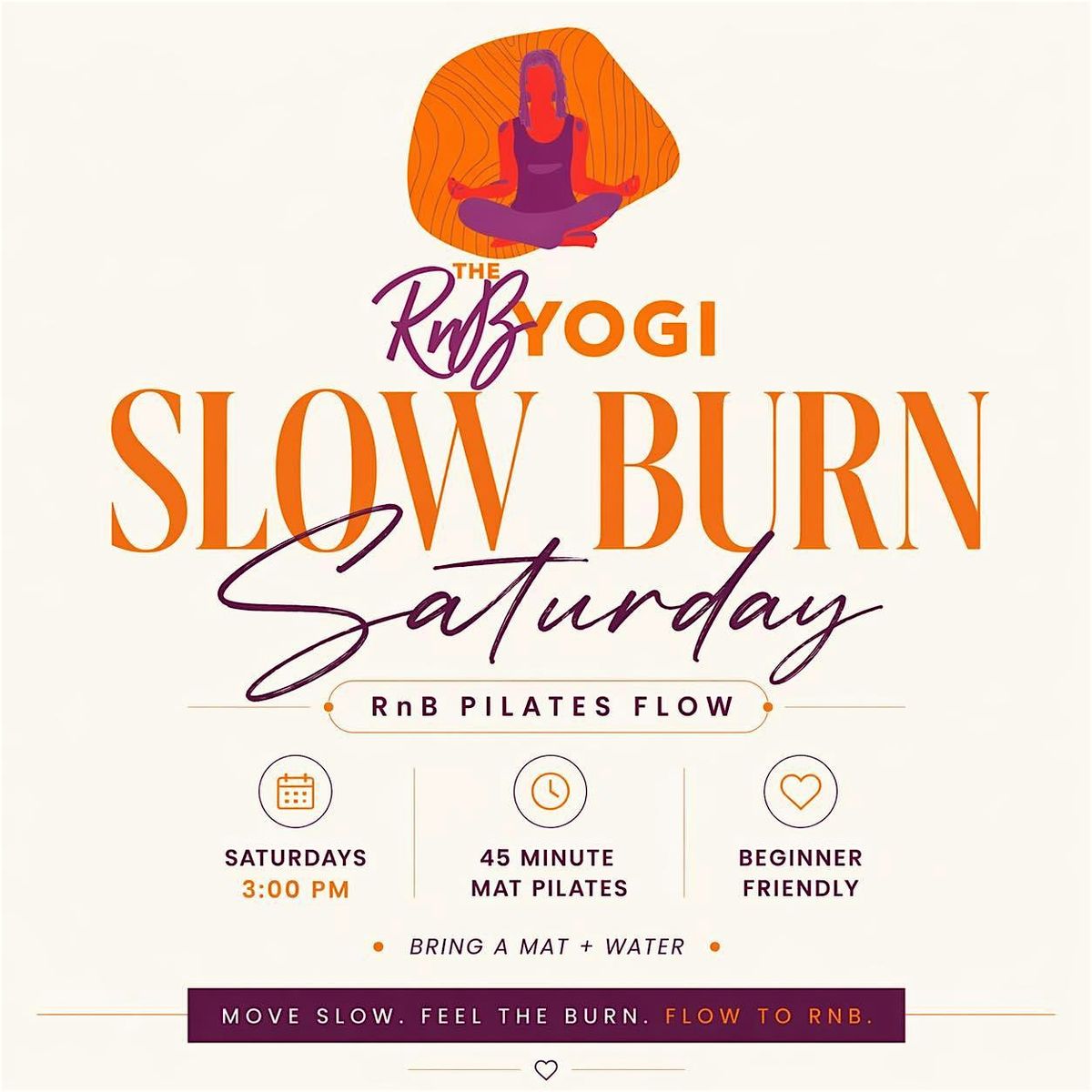 Join The RnB Yogi for the very first Slow Burn Saturday—an intentional mat Pilates experience set to smooth RnB vibes.