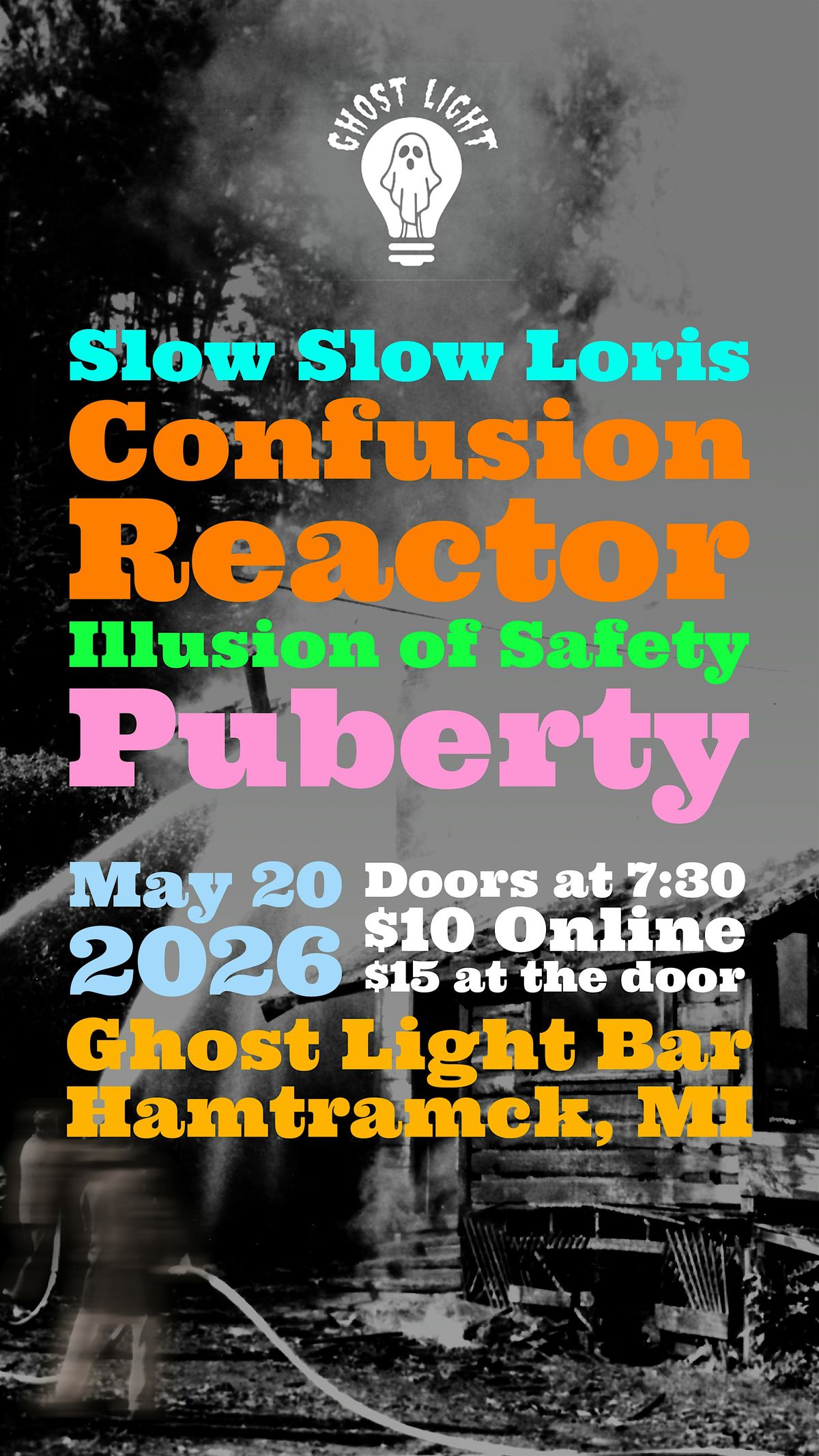 Get ready for a mind-bending musical journey with Slow Slow Loris, Confusion Reactor, Illusion of Safety, and Puberty @ Ghost Light!