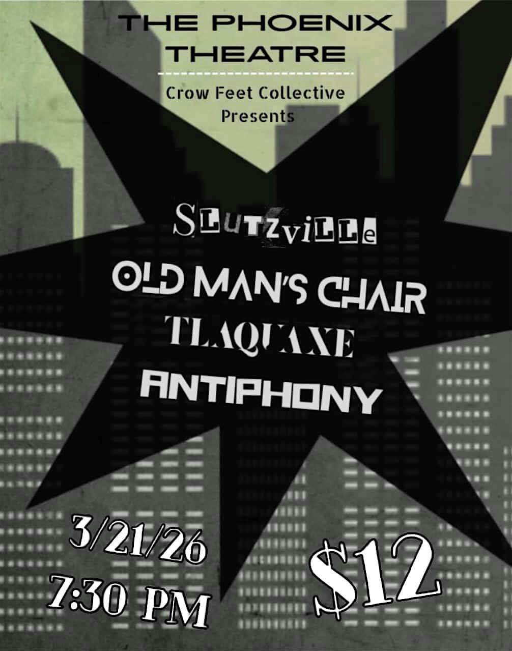 Slutzville, Old Man's Chair, Tlaquaxe and Antiphony at the Phoenix!