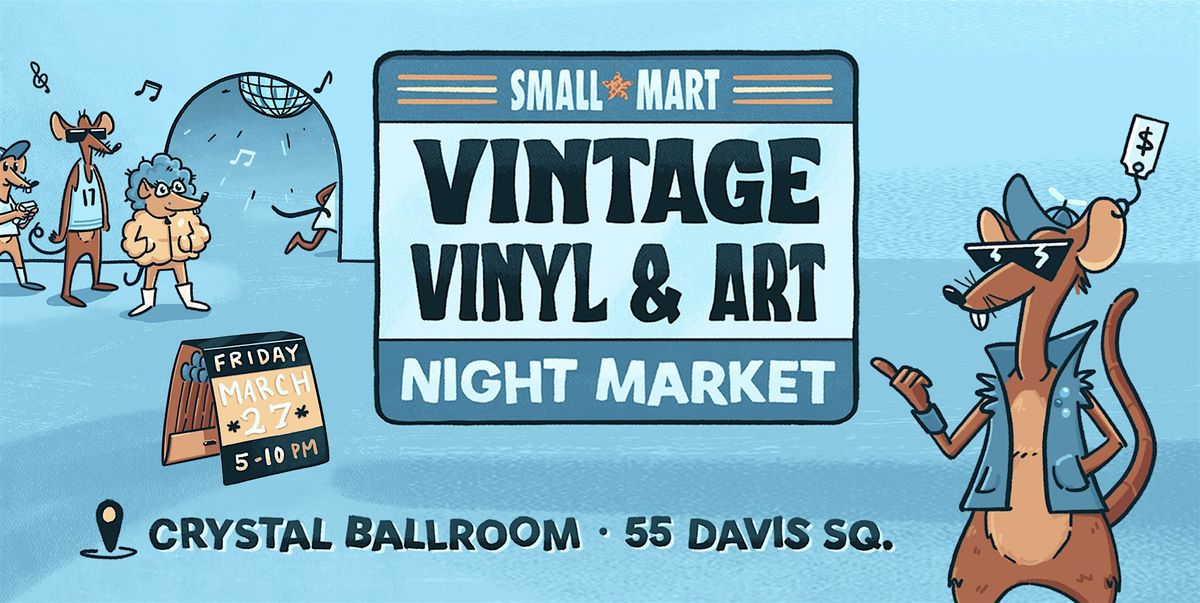 Vintage, Vinyl & Art Night Market Friday, March 27 5pm to 10pm at the Crystal Ballroom in Davis Square, Somerville.