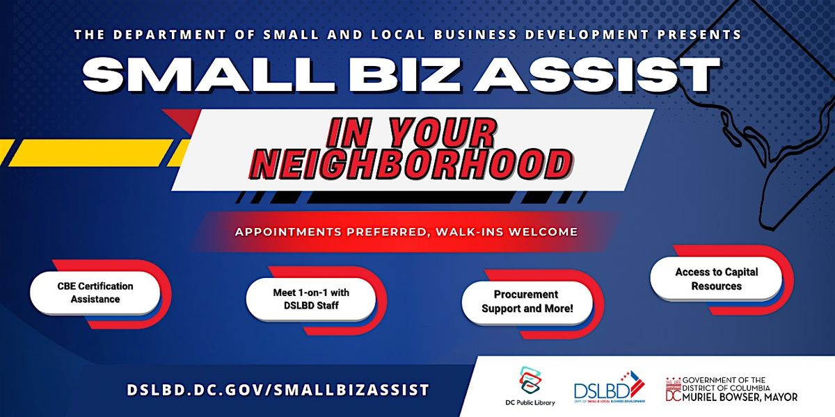 Welcome to DSLBD’s Small Biz Assist in Your Neighborhood event at Juanita E. Thornton/Shepherd Park Neighborhood Library! Join us on April 29, 2026 at 10:00 AM (Eastern Time) for a day filled with valuable insights and resources to help your small business thrive.