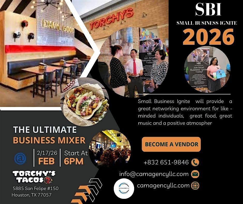 The Cam Agency presents its exclusive event, Small Business Ignite Networking Mixer "Every Last Wednesday", October 29, 2025. This exclusive event will give a unique networking experience for all entrepreneurs, tastemakers, socialites, business influencers and like minded individuals will be held at The Roof located at 1531 Hwy 6 3rd Floor #300 Sugarland, TX 77478. This networking event will begin at 6PM. We're inviting "All Industries; Medical, Health and Wellness, Fashion,Service, Attorneys, Beauty, Non Profits, Travel, Tech and more.