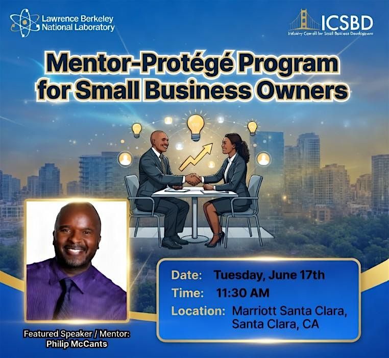 Join us in person for an exciting event where you'll get to dive into the Small Business Mentor Protégé Program led by the awesome Philip McCants from Berkeley Lab. It's a fantastic chance to network, learn, and grow your small business with expert guidance. Don't miss out on this cool opportunity to connect and level up your business skills!