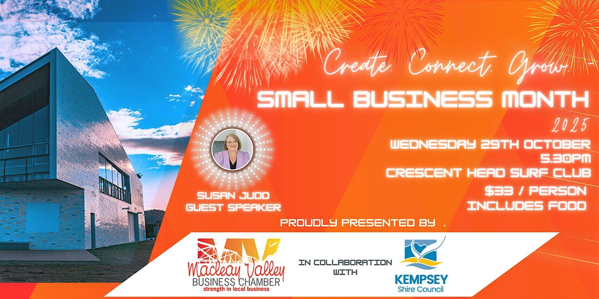 Celebrate Small Business Month with the Macleay Valley Business Chamber at a night designed to inspire, connect, and empower our local business community.