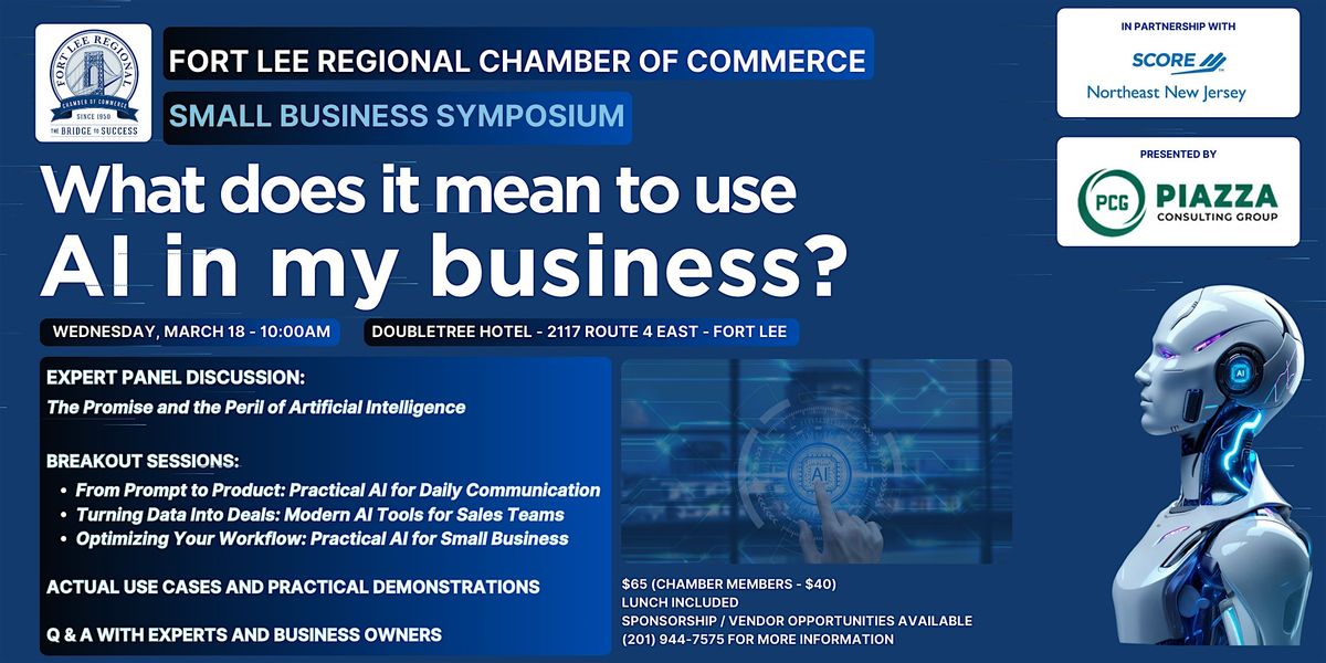 Artificial Intelligence is no longer a future concept — it’s a practical set of tools that small businesses can use today. Join the Fort Lee Regional Chamber of Commerce for a timely and informative Small Business Symposium designed to help business owners understand what AI really means for their operations, marketing, and growth.