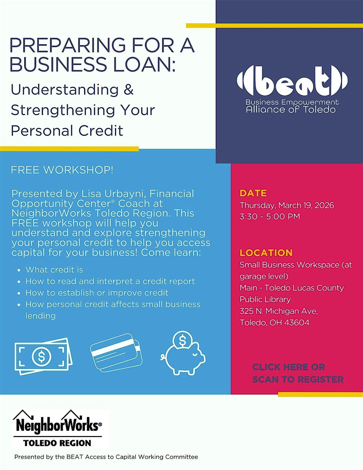 This free workshop will explore important topics regarding preparing your credit for a small business loan including: