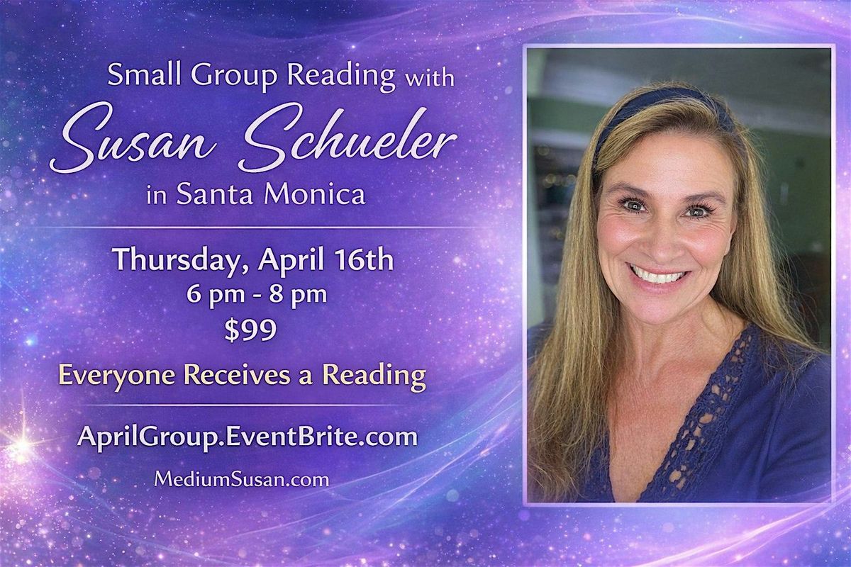 Join International Medium Susan Schueler as she brings through your loved ones on the other side. This in person small group reading is reserved for no more than 8 participants and each individual will receive a personal reading (Psychic/Mediumship). This is a VERY unique experience, so expect an intimate evening full of love, healing and joy, as Susan demonstrates that love never dies.