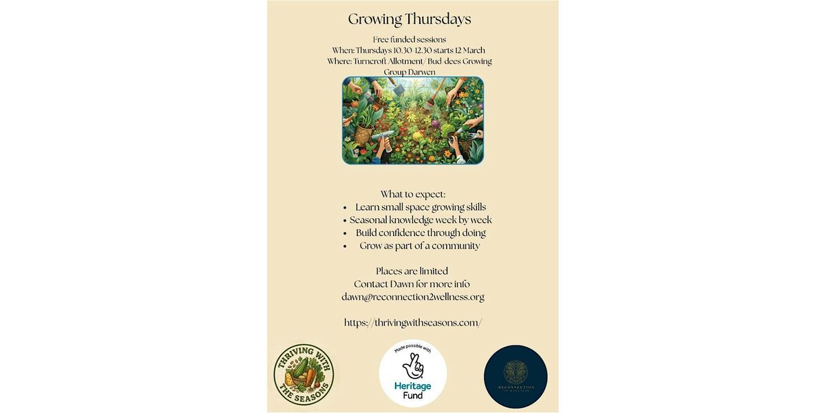 Practical, hands-on growing sessions focused on making the most of small spaces (no allotment or big garden needed). We’ll grow skills and confidence together, and we’ll encourage you to learn alongside neighbours and others in the growing community, because this is how we used to live: growing what we can, and supporting each other.