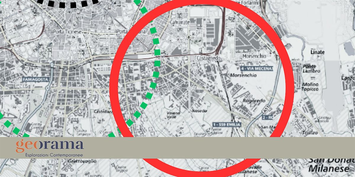 Anche in questa traccia siamo su un filo, come equilibristi su un crinale: da una parte Milano, dall’altra la metropoli. Da una parte, come guardando una città di mare, la palazzata immobile su un limite, prospiciente su un passato che dovrebbe essere un saldo ancoraggio di futuro: l’interminabile centuriazione coltivata e irrigua, che sempre più subisce assalti e perdite. È questo crinale che ci permette di penetrare i tentacoli che si allungano dalla città verso il patrimonio storico e agricolo, che ci incanala, tra ciribiciacculin, quartieri popolari novecenteschi e di housing sociale, nuovi parchi strappati al disagio, scali ferroviari e parabole televisive verso l’ultima astronave atterrata in città.