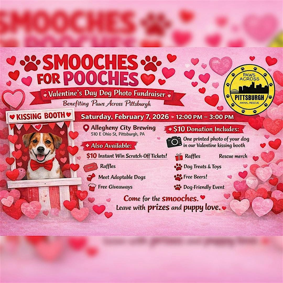 Join us for Smooches for Pooches, a Valentine’s Day dog photo fundraiser benefiting Paws Across Pittsburgh! Bring your pup for a smooch-worthy photo, grab some prizes, and help support local rescue dogs and cats.