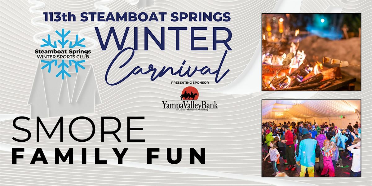 Families, take part in the Winter Carnival Celebration! During the evening activities at Howelsen Hill, a family-style chili and s’more party will take place in the big white tent on Vanatta Ballfield. Just call it S’More Family Fun! Enjoy the outside activities, then head into the tent for warm chili, a DJ, and dancing! Complete with a bonfire and s’more-making outside! A Winter Carnival button and TICKETS REQUIRED.