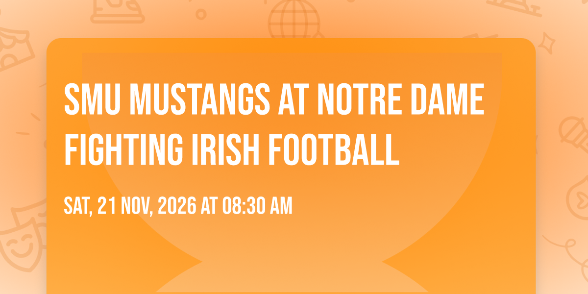 📍 Location: 41.6971, -86.2326🌟 Journey into wonder at SMU Mustangs at Notre Dame Fighting Irish Football, where extraordinary experiences await around every corner! 🏛️ Set against the backdrop of Notre Dame Stadium in dynamic Notre Dame, IN, this event promises to exceed all expectations. 📅 Join us on November 21st, 2026 at 08:30 AM for a celebration that combines innovation, entertainment, and community spirit in perfect harmony. ✨ There will be an atmosphere where memories are made and stories come alive, ensuring every guest experiences something truly remarkable. 🎊 This is more than just an event; it's a journey into the extraordinary!
