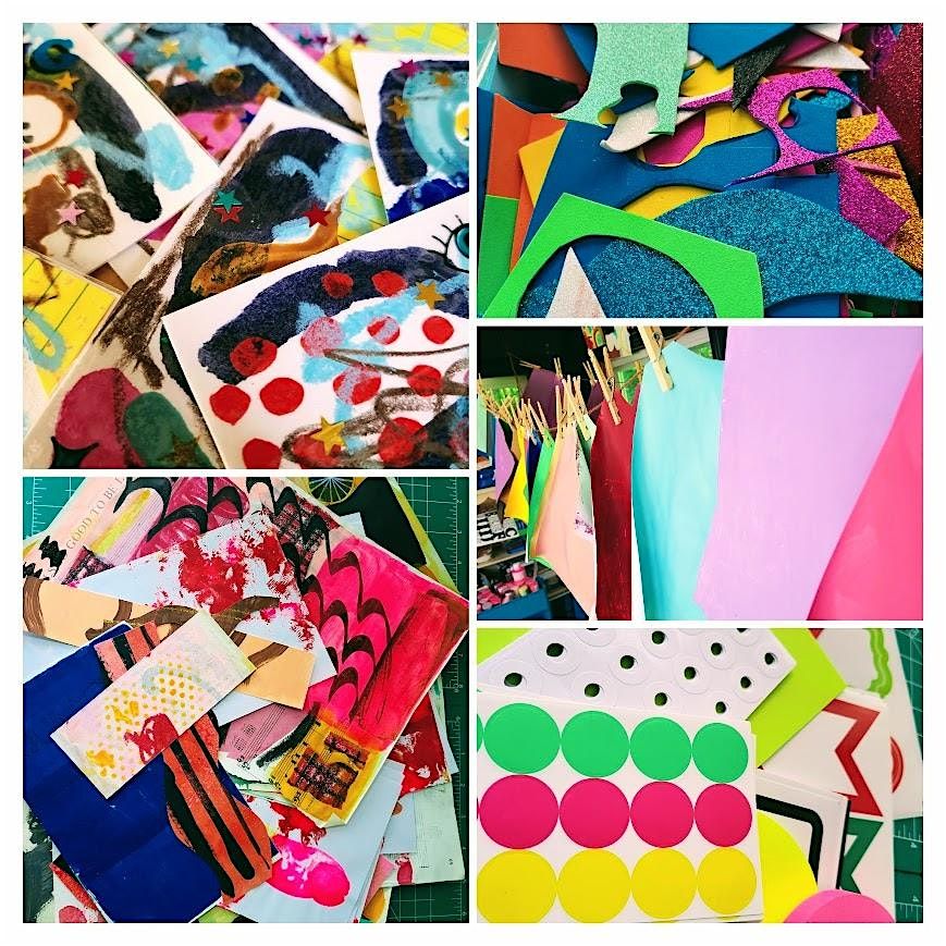 All materials provided, substrate, books and magazines, colorful painted papers, cut outs and more.