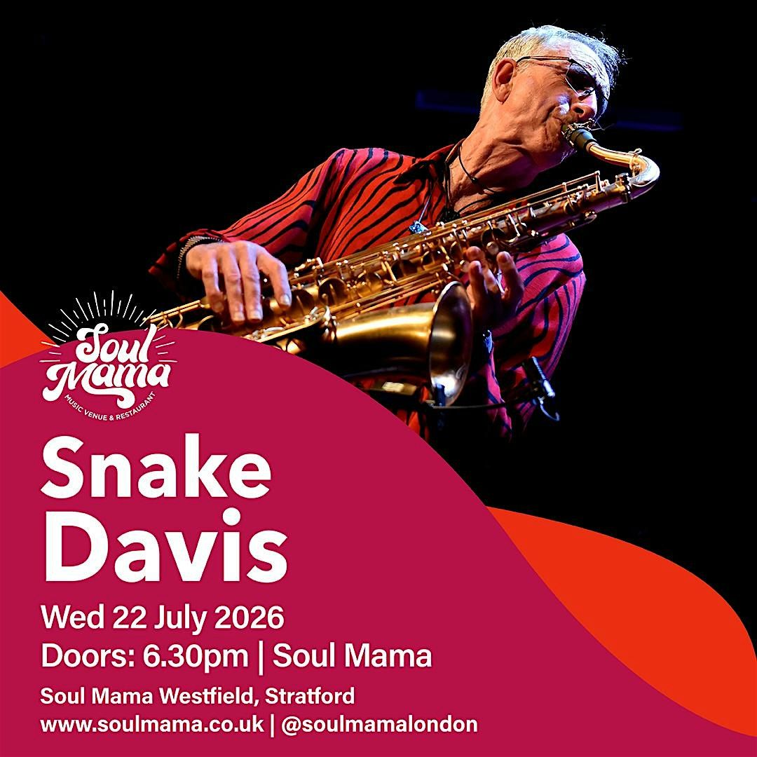 We are excited to have Snake Davis return to Soul Mama with his 4 piece band, with guitar, bass guitar and drums.About this Event