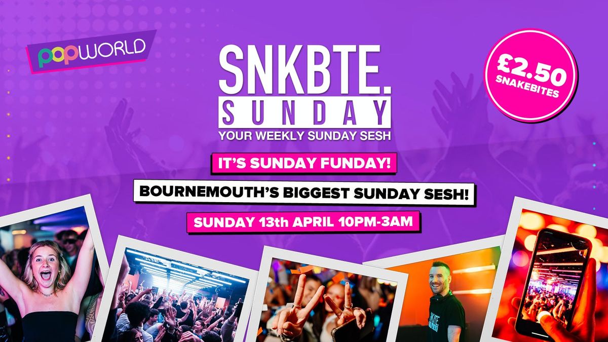 ?Snakebite Sunday I Every Sunday 10pm - 3am ?? SUNDAY FUNDAY! ?You know how we throw it down every Sunday at Bournemouth's favourite party venue Popworld and this Sunday will be no different. Snakebite Sunday is the BIGGEST Sunday party in Bournemouth (and possibly the world ?) so join us for £1 shots, £2.50 drinks, party anthems, confetti showers and HUGE sing-a-longs until 3am ?It's officially time to cancel your Monday morning! ?Advanced tickets are essential for this event ⚠️Make sure you get yours now! ⏰Here’s what to expect:? One BIG Sunday Funday⚡ Festival Lighting & Sound? Bournemouth's Newest Venue? Pop, Cheese & Chart Anthems? MASSIVE Sing-A-Longs & Guilty Pleasures? Snakebite Shot Limbo & Dance Off's? Inflatables & Lip Sync Battles ? Free Snakebite Tower With Every Table Ticket? Non-Stop Party Vibes All Night? Confetti, Confetti & More Confetti✅ The BIGGEST Sunday Party In Town... ALL YEAR ROUND? Snakebite Resident DJ Joe Semark? £1.00 Shots & £2.50 Drinks? £2.50 SNAKEBITES! (It’s what we’re famous for!)♪★♪ MUSIC ♪★♪Expect pure party vibes every week as our DJ's bring you the very best in Chart // House // Garage // Bass // Mash Up & Guilty Pleasures!Become a SNKBTE VIP Including Entry, Q Jump, VIP Booth, Complimentary Bubbly, Shots and exclusive bottle packages. (Book a booth ticket online now!)Celebrating a birthday? ?Slide into our DM’s to claim free entry, free VIP booths and free bubbly to get the party started!⬇️ A-List Card Exclusive Offers ⬇️We are extremely pleased to announce we are continuing our partnership with our friends over at A-List and offering all A-List Student card holders free entry until 11pm and £2 entry before midnight! What Do I Do Next?✔ LIKE the Snakebite Sunday Bournemouth page:www.facebook.com/SnakebiteSunday✔ FOLLOW Snakebite Sunday on Instagram: @Snakebite_Sunday✔ GET A TICKET NOW:Tickets Available → www.fatsoma.com/events-bournemouthGuarantee your entry and skip the queue by getting a ticket now.More on the door.Brought to you by InCrowd Events, the beat behind Bournemouth's favourite brands and some of the wildest parties on the South Coast!? www.incrowdevents.co.uk ? www.facebook.com/incrowdeventsuk ? @incrowdeventsuk⬇ IMPORTANT INFORMATION ⬇- All our events are strictly 18+ (Government ID Required)- Last entry time stated on ticket- All tickets / wristbands are non-refundable- R.O.A.R