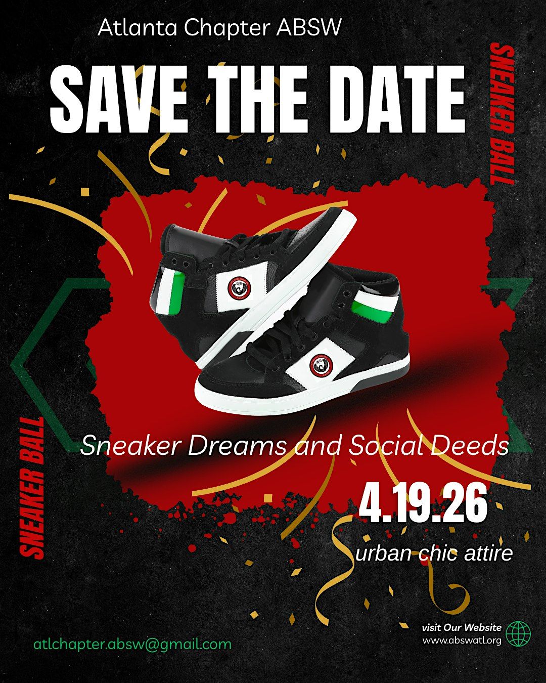 The Sneaker Dreams and Social Deeds Sneaker Ball is designed to support the development of Black professionals in the fields of social work, community planning, and social justice. Each year, the Atlanta Chapter of the Association of Black Social Workers (ABSW) sponsors the William Bradley Scholarship, providing financial assistance to a Black student pursuing an undergraduate or graduate degree.