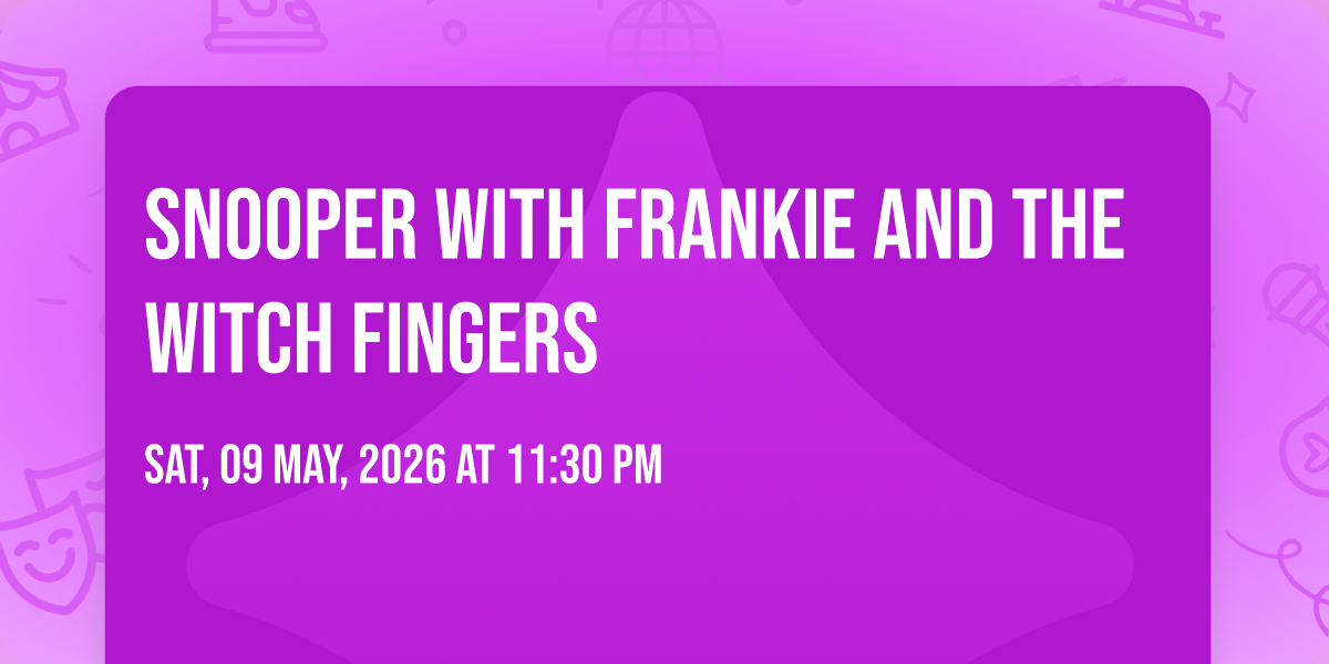 📍 Location: 32.7902, -79.9383🎉 Welcome to Snooper with Frankie And The Witch Fingers, where the impossible becomes possible and dreams take flight! 🏛️ Join us at Music Farm in the heart of Charleston, SC for an event that will redefine your expectations. 📅 On May 9th, 2026 at 11:30 PM, witness the transformation of space and time into something truly magical. ✨ It's a curated experience combining the best of innovation, entertainment, and community spirit, creating moments that will be remembered for years to come. Whether you're a first-time visitor or a seasoned enthusiast, prepare to be amazed. 🎊 Book now to ensure your place in this unforgettable experience!