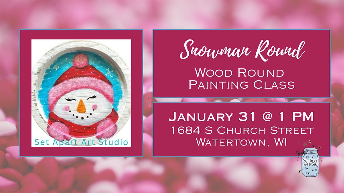 Welcome to the **Snowman Rustic Wood Round Painting class**! Join us at **1684 S Church St** on **January 31, 2026 at 1:00 PM** (Camp Buckaroos building-between UPS store and El Marachis) for a fun and creative afternoon.