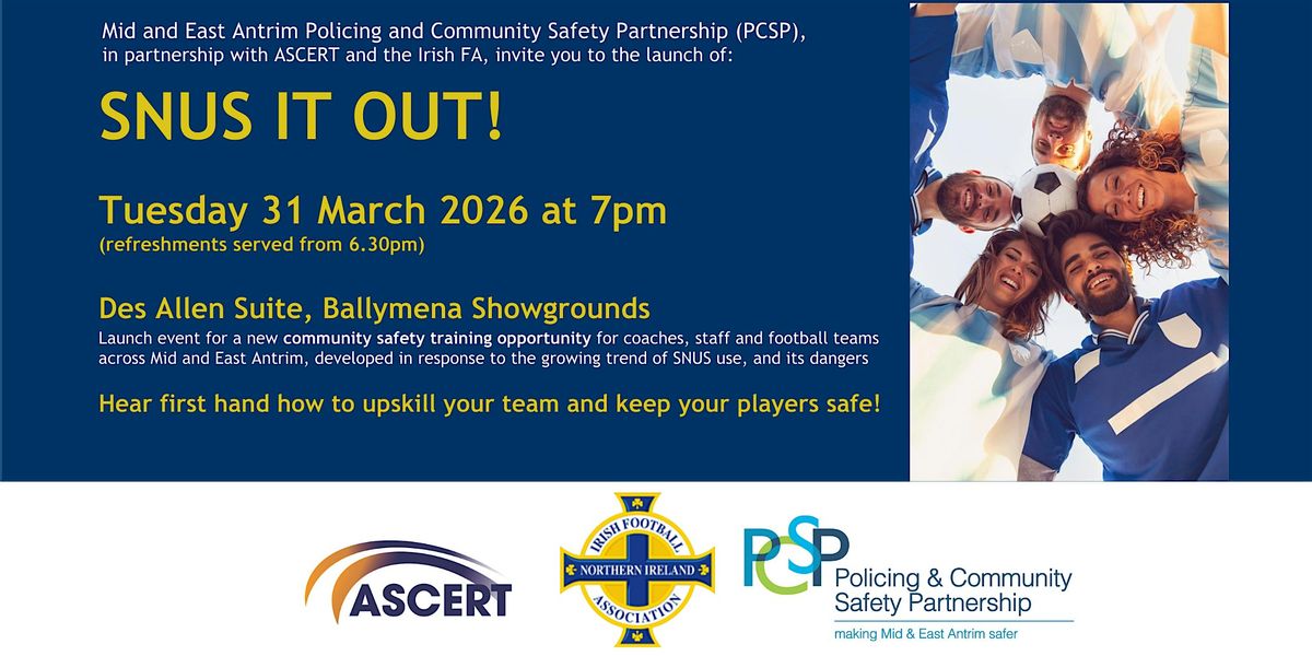 Mid and East Antrim PCSP in partnership with ASCERT and the Irish Football Association invite you to the launch of SNUS it out!About this Event