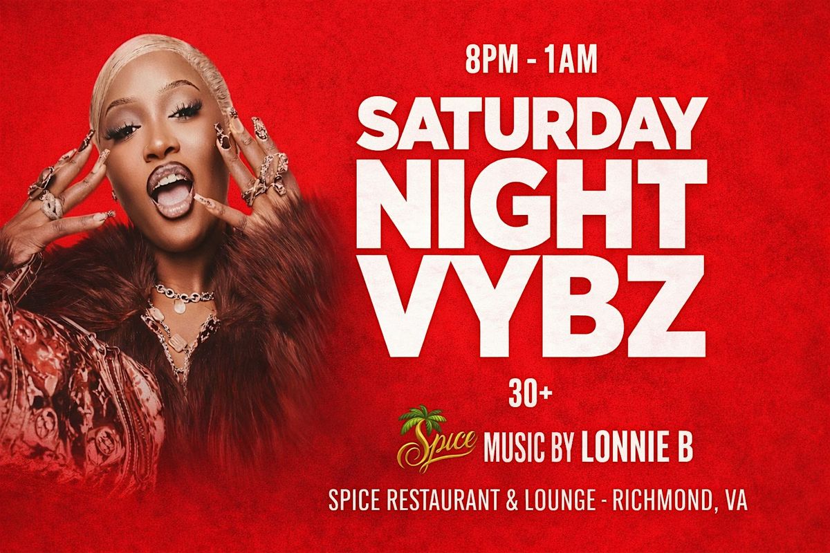 VYBZ Saturdays is Richmondβs weekly destination for elevated vibes, meaningful connections, and unforgettable celebrations. Every Saturday night, Spice Restaurant & Lounge becomes the place where friends gather, accomplishments are celebrated, and the cityβs grown, stylish crowd comes together in an upscale social atmosphere.