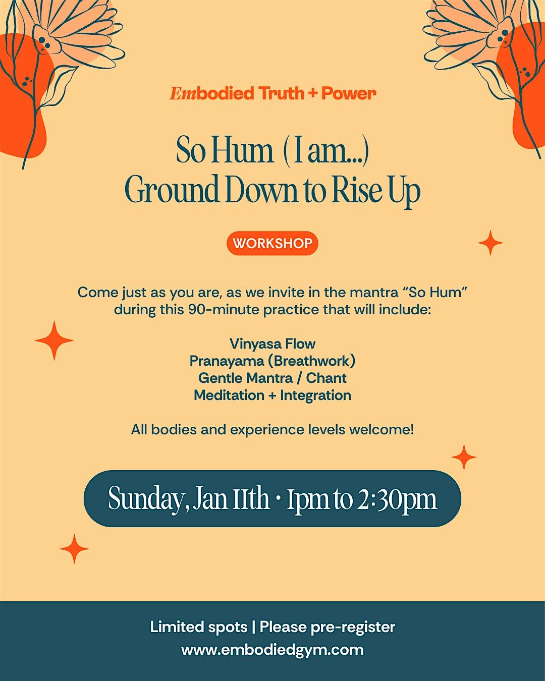 This 90-minute embodied practice introduces the mantra So Hum—a Sanskrit phrase meaning “I am”—as a way to reconnect with your breath, body, and inner steadiness.