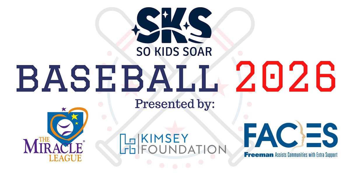 So Kids SOAR Baseball 2026: SKS will partner with The Miracle League of Montgomery County again to create an adaptive baseball clinic, sponsored by Kimsey Foundation and Carl M. Freeman FACES Foundation. Equipment provided by Good Sports.