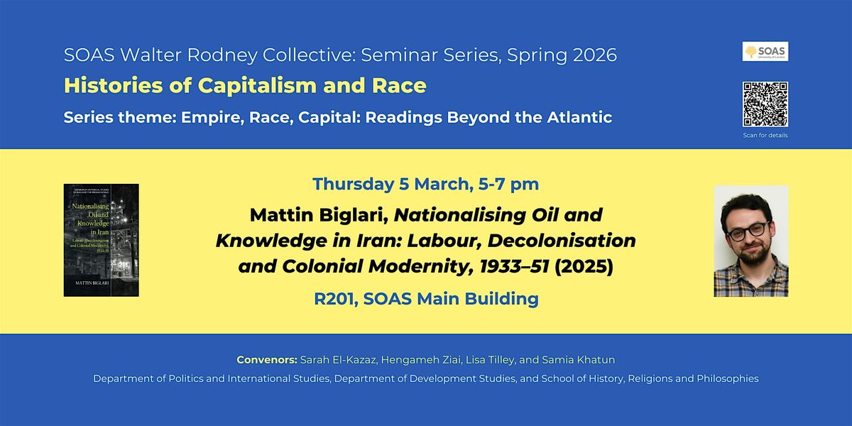 Iran’s nationalisation of oil in 1951 was a key catalyst for the rise of resource nationalism as an animating force of global decolonisation, expelling the Anglo-Iranian Oil Company (AIOC, now known as BP) after nearly fifty years of domination in southwest Iran. Nationalising Oil & Knowledge in Iran turns attention to the origins of nationalisation in the everyday struggles between the oil company and subaltern actors in the city of Abadan, then home to the world’s largest oil refinery and deeply imbricated in networks of colonialism and racial capitalism.