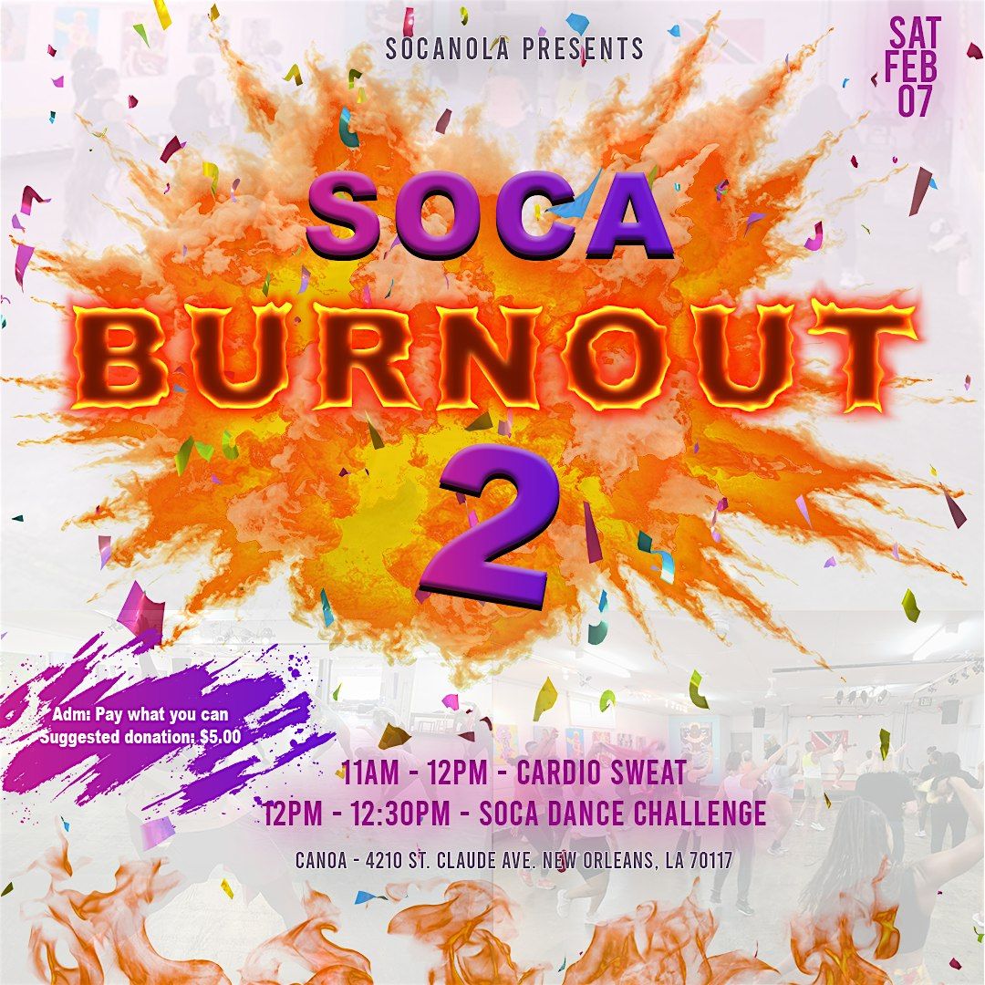 Get ready for SOCA BURNOUT 2! You asked and we answered! Back by popular demdand, the hottest dance workout around! Join us for a sweat session filled with infectious soca beats, nonstop dancing, and good vibes.