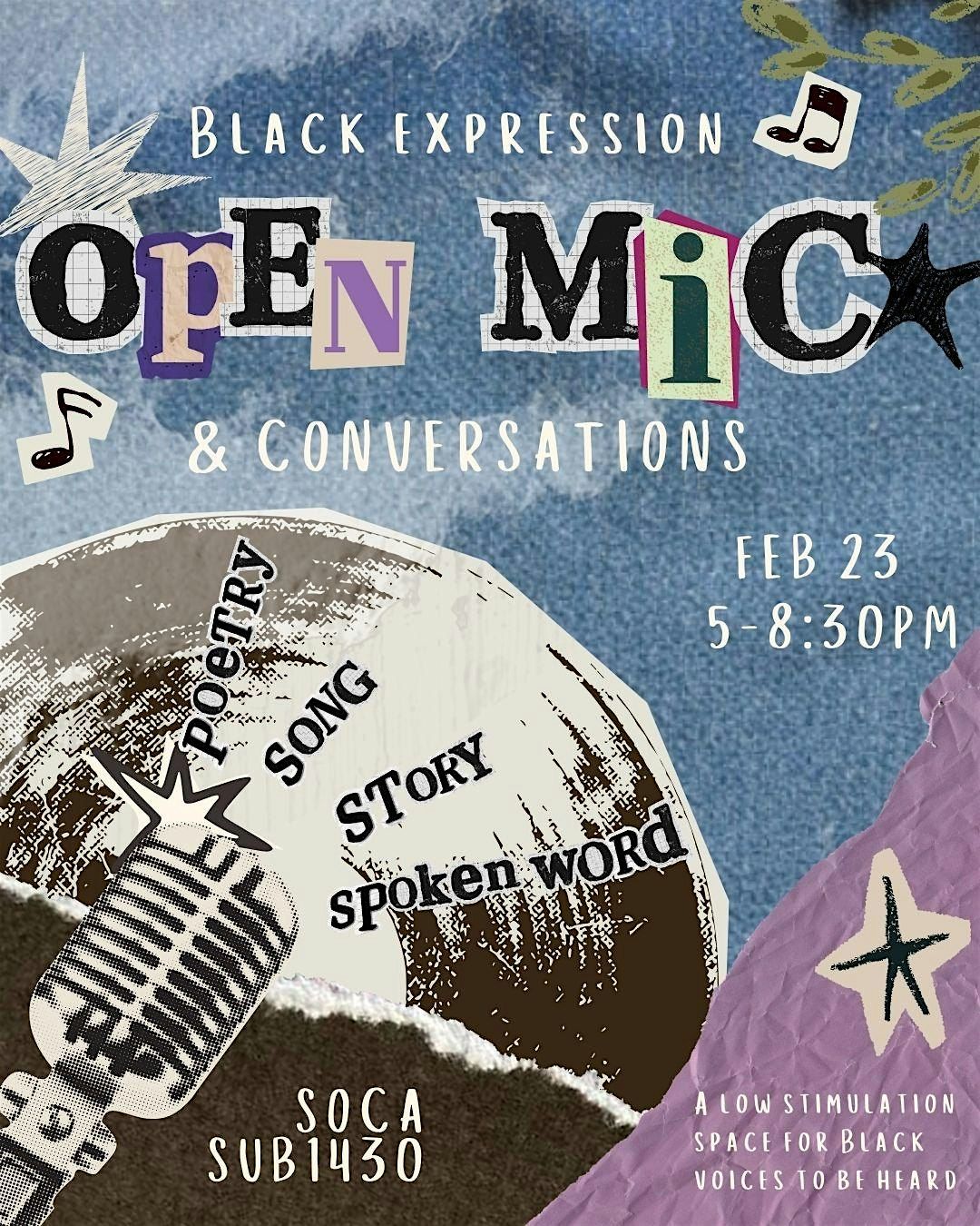 Get ready for an awesome night at SOCA - Open Mic Night! Whether you're a poet, singer, comedian, or just wanna cheer on friends, this in-person event is the perfect spot to showcase your talent or discover new ones. Bring your good vibes, grab some snacks, and enjoy a chill evening filled with creativity and fun. Don’t miss out on the chance to be part of the action and meet cool people!