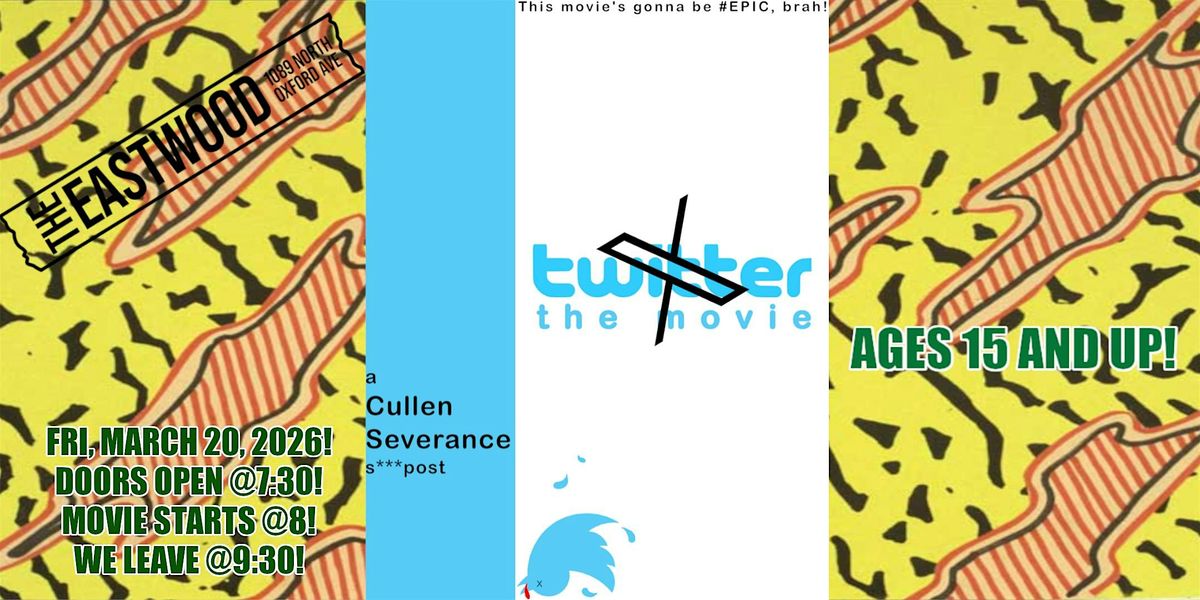Want to go see a movie at a theater Friday, March 20, but don't see anything you're interested in checking out? Especially if it's a comedy? Come on down down to the Eastwood Performing Arts Center, home of our friends at the Great Film Club, to check out a SPECIAL short film presentation of my very own comedyshort film 'Twitter X: the Movie!'