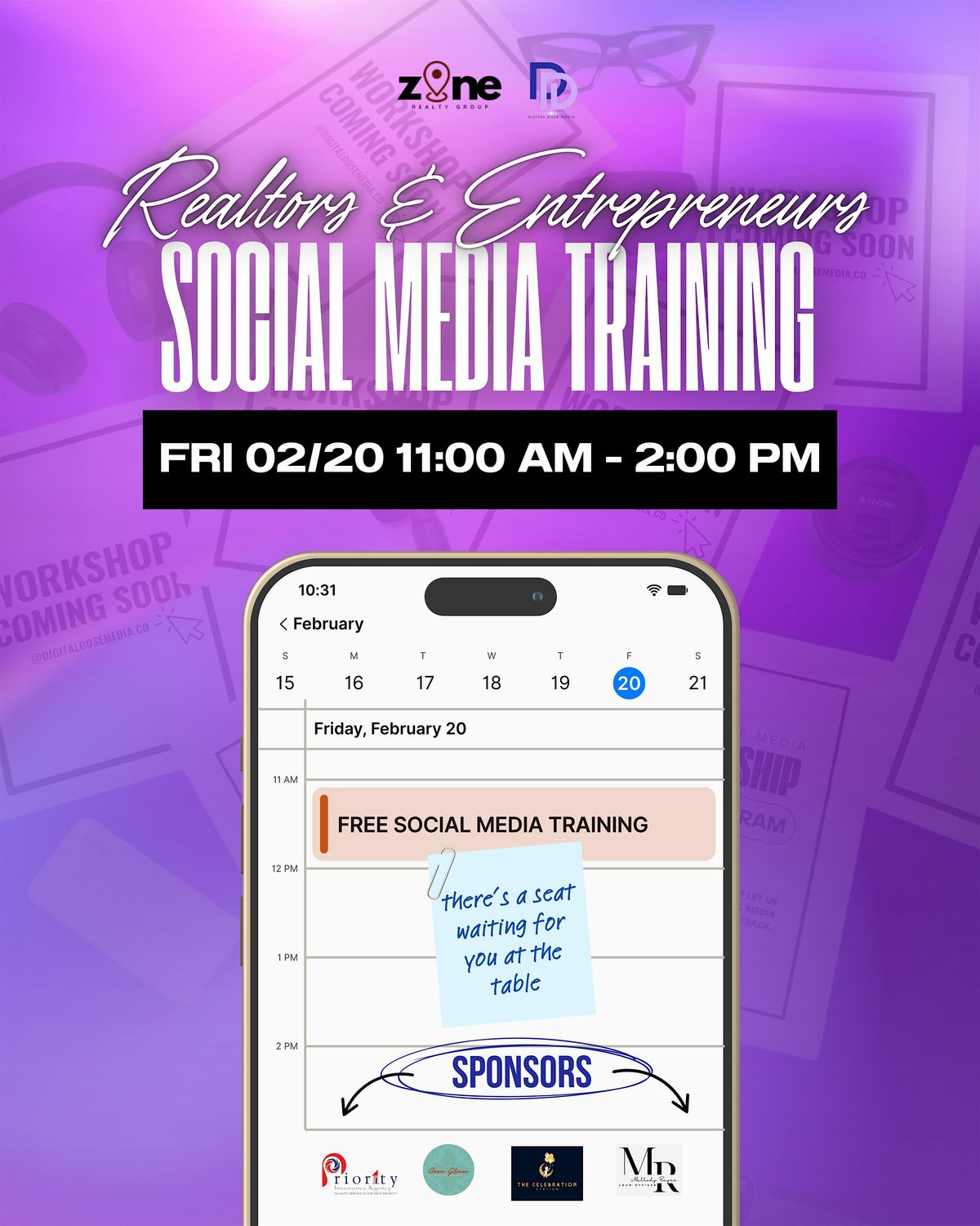 Join us for an exclusive FREE Social Media Training designed specifically for Realtors, entrepreneurs, and business owners looking to grow their brand, attract more clients, and create high performing content online.