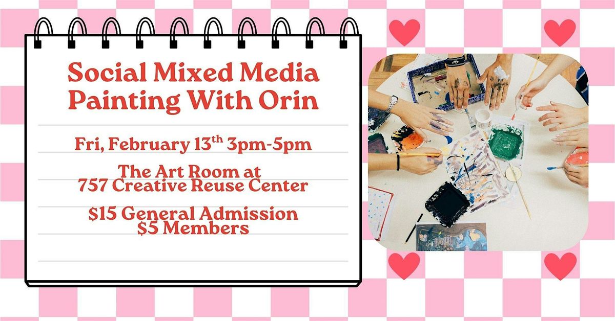 This is a social group painting activity, come alone or bring a friend! This class is meant to get people talking and hopefully make some new friends by the end. Along with making a cool mixed media painting! We will have your standard paintingn supplies available along with different stations of mixed media supplies to choose from. All supplies will be provided for, unless you wish to bring your own canvas with your desired size. The intentions with this class is everyone will take turns adding things on each persons canvas, so by the end everyone will have a personal work of art that eveyone in the class contributed in creating!