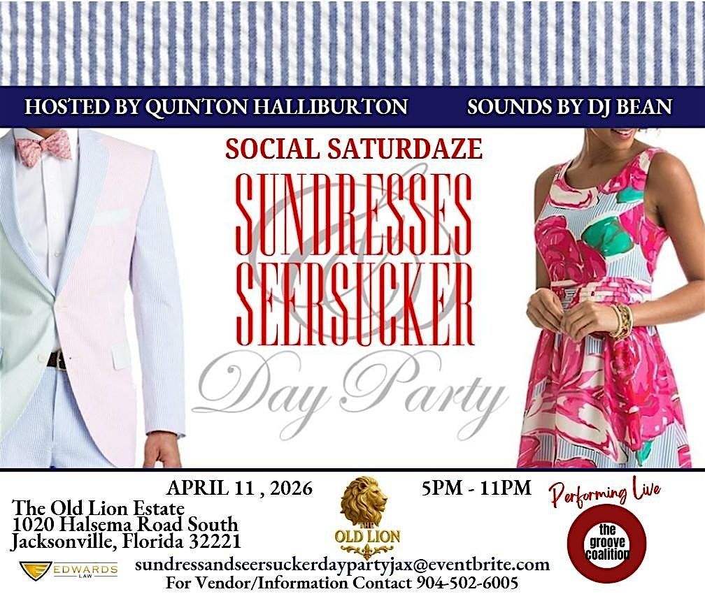 JACKSONVILLE AND SURROUNDING AREAS GRAB YOUR SOCIAL SATURDAZE SUNDRESSES& SEERSUCKER DAY PARTY TICKETS WHILE THEY LAST.