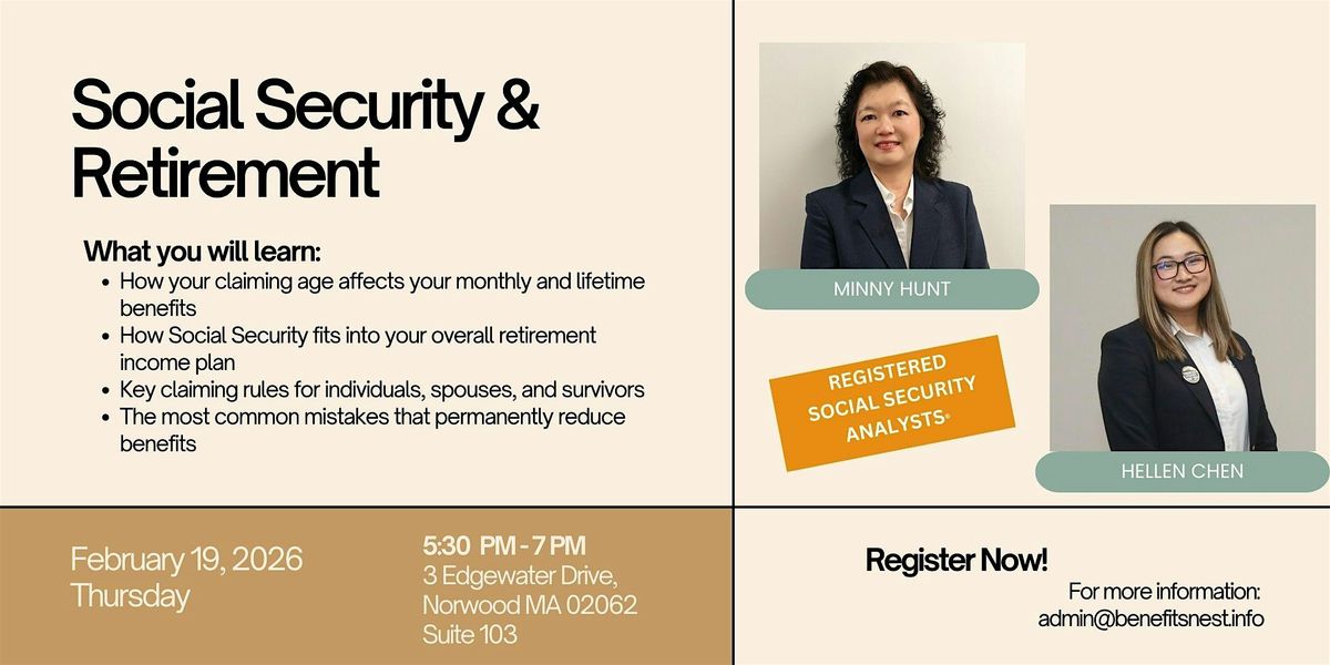 Social Security is one of the most important income sources in retirement, yet it is also one of the most misunderstood. Small claiming decisions can create permanent impacts on your lifetime income. This workshop is designed to help you understand your options clearly and make informed choices with confidence.