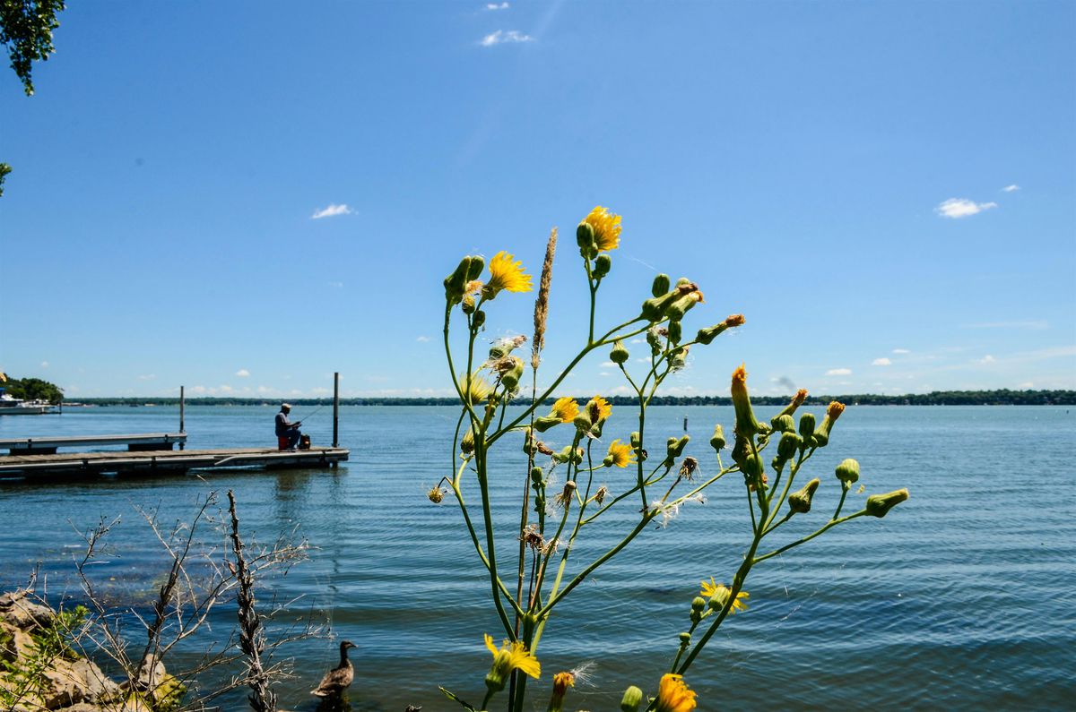 Event header image features a yellow flowered plant in the foreground with a lake beyond.