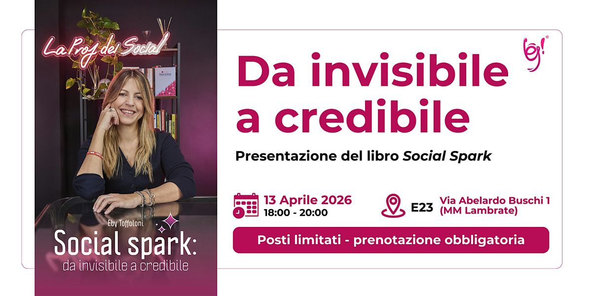 Durante questa serata vi racconterò il mio nuovo libro Social Spark: da invisibile a credibile e il percorso che mi ha portata a scriverlo.