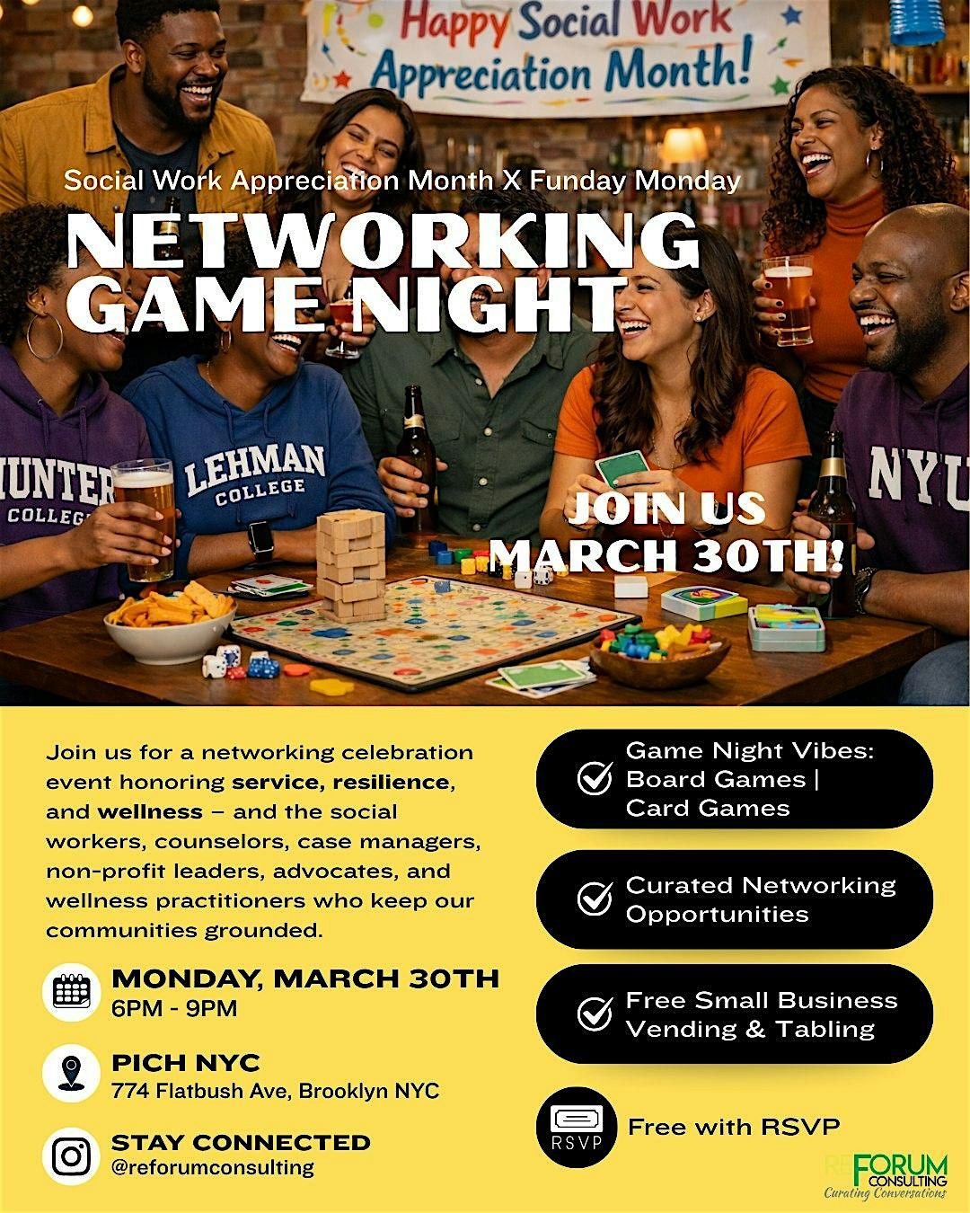 This Social Work Appreciation Month, we’re bringing the community together for a night of connection, laughter, games, and good energy.