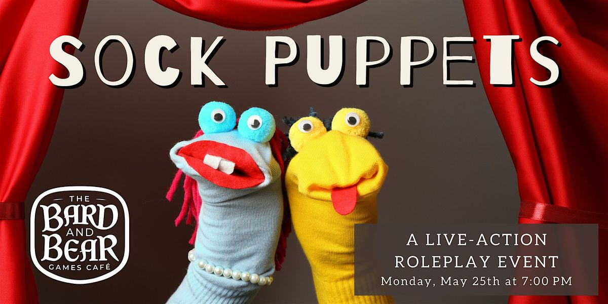 Sock Puppets is a silly and lighthearted LARP for up to 12 players. No experience with live-action roleplay, children's programming, or puppeteering is required. Bring your own puppet or make one on site!