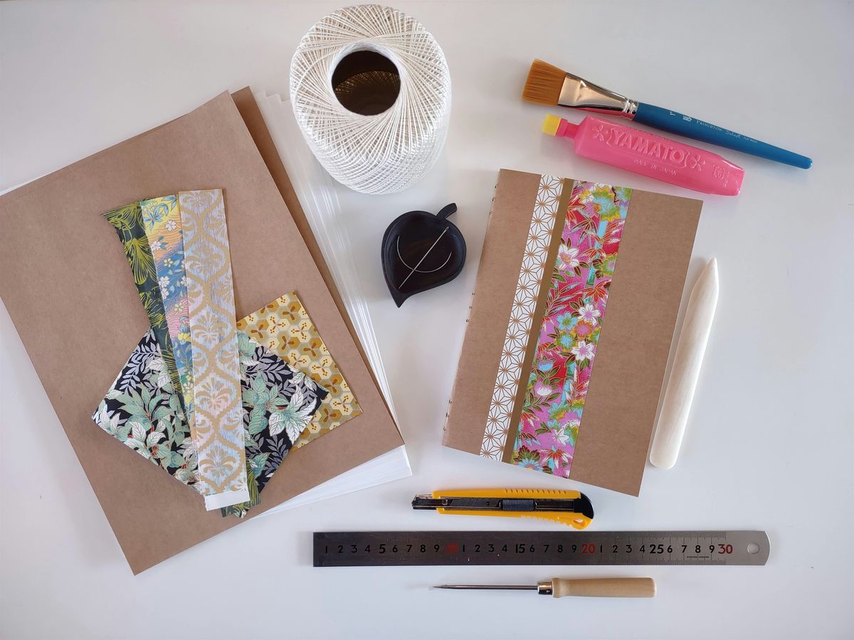 All tools and materials to create your journal will be provided. You'll be able to choose from blank, lined, or dot grid pages to fill your journal. At the end of the class you'll be able to use artisan papers from our collection to collage the cover of your journal before taking it home with you.