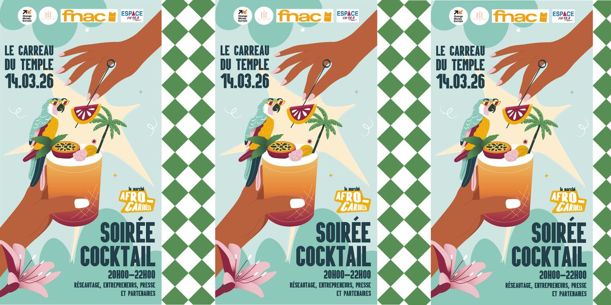 À l’occasion du Marché Afro-Caribéen, nous vous porposons une soirée cocktail exclusive le samedi 14 mars 2026 de 20h00 à 22h00 au Carreau du Temple.