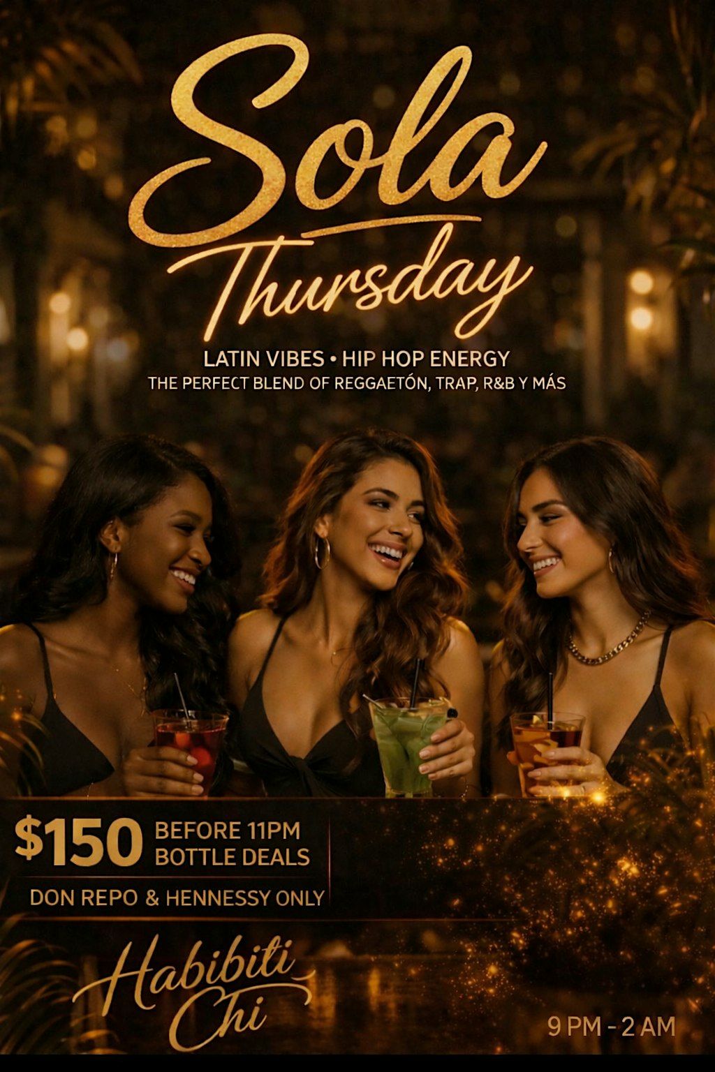 Chicago’s hottest Thursday night is here—where Latin heat meets hip-hop energy every single week. Join us at Habibti Chicago for Sola Thursdays, the ultimate midweek escape for music lovers, dancers, and partygoers.