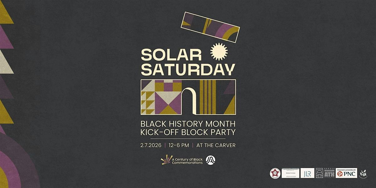 Join us on Saturday, February 7, 2026 from 12:00 pm-6:00 pm for the Solar Saturday: Black History Month Kick-Off Block Party! In partnership with PNC, the Carver is celebrating the Black History Month Centennial with an action-packed kick off! As a full-site activation, we will open the festivities with a proclamation in front of the museum on the plaza, Black Makers Market will be in full effect with free hot cocoa and cookies from Starbucks, we'll have fun events, workshops, and activities in the conference room, the classroom, the dance studio, the theatre, and the drum, vinyl records on long play with DJ Marc Fort will fill the halls, and the new gallery exhibition featuring the work of Steven Bernard Jones will be opening! So much beautiful community connection and celebration - you don't want to miss this! Light snacks and refreshments will be served, free and open to the public, designed for all generations in mind.