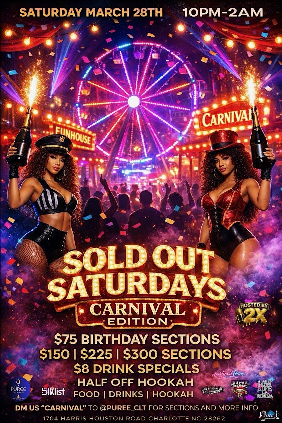 Lights flashing, bass knocking, and the energy louder than a midway at midnight… Sold Out Saturdays: Carnival Edition is taking over Puree CLT!
