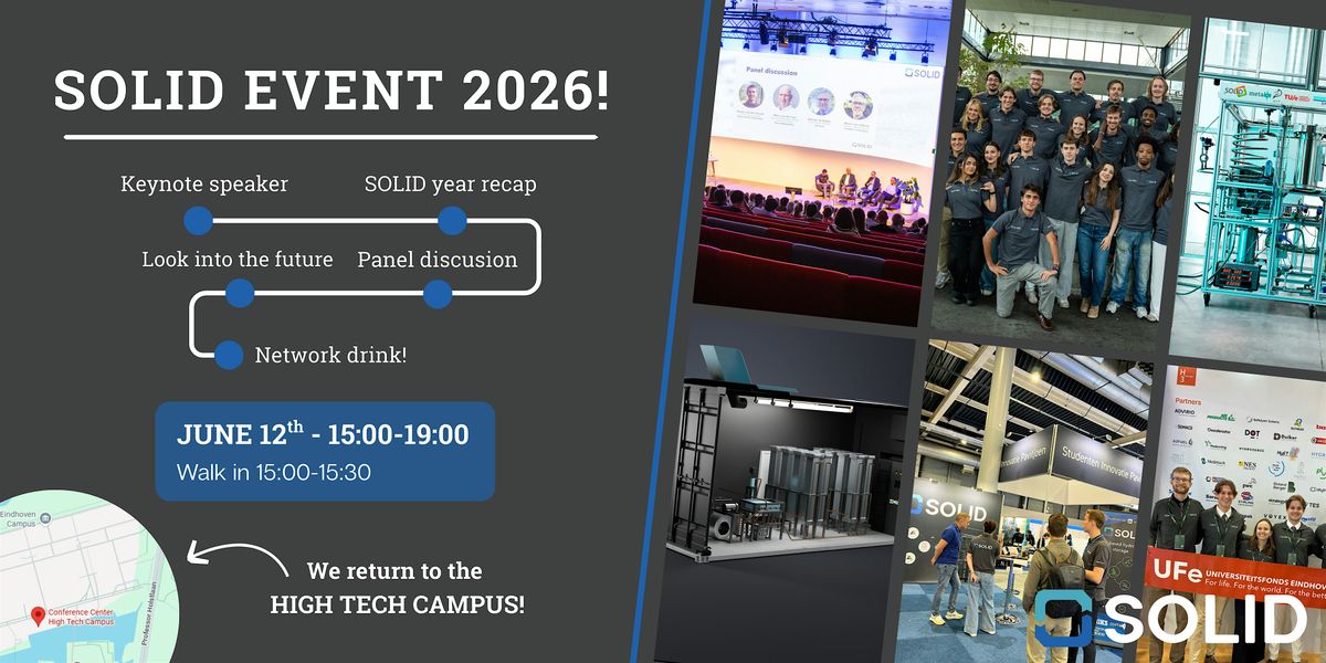 Welcome to the SOLID Event 2026! Join us for an exciting afternoon filled with hydrogen and iron. During the event you will experience a keynote presentation, panel discussion, a look into the future and a network drink. More information will folow soon!
