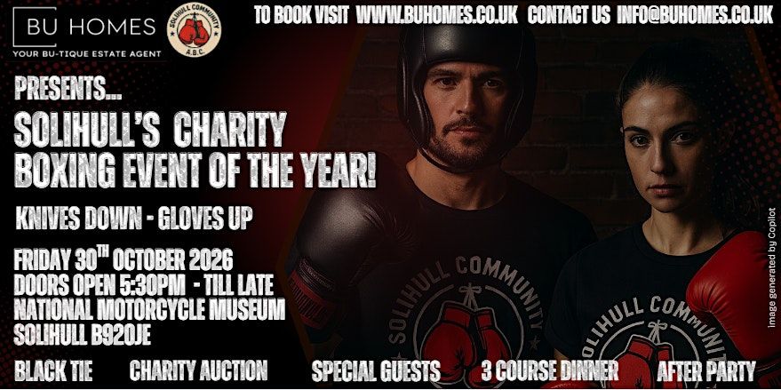 BU Homes and Solihull Community Boxing Association (Charity No 1178732) proudly presents one of the most anticipated events of 2026, hosted at one of the Midlands’ most iconic venues — The National Motorcycle Museum, Solihull.